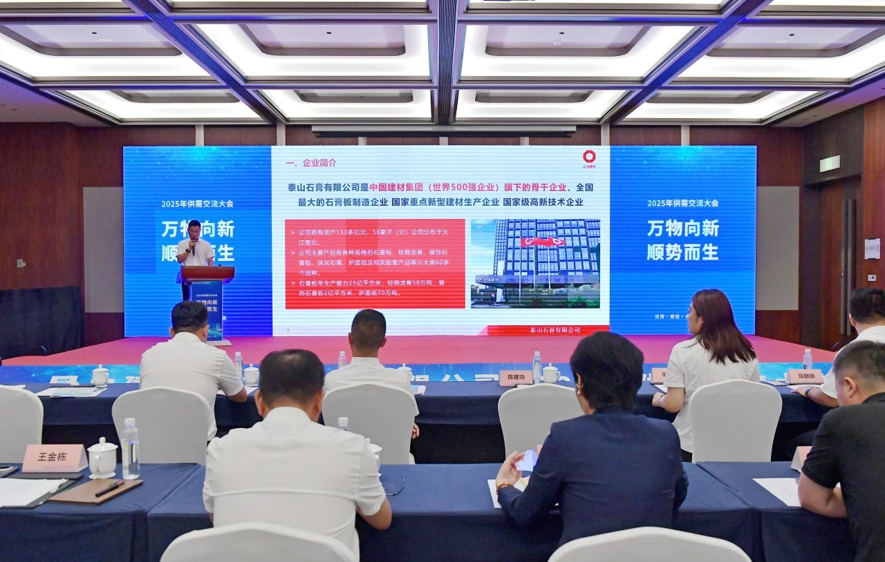 近日,中建六局装饰工程有限公司2025年供需交流大会以“万物向新,顺势而生”为主题盛大启幕。泰山石膏受邀参加本次大会,与装饰行业近百余家核心企业代表共同剖析行业新格,探寻协同发展新路径。大会现场,与会各方秉持 “成为一家人,共做一家事” 的核心理念,围绕品质提升、技术创新、安全生产、合规经营、人才培育等关键议题展开深度对话,各方一致认为在行业深刻变革期,唯有深化战略互信、强化协同创新,实现资源共享与优势互补,方能开辟合作共赢的崭新局面。